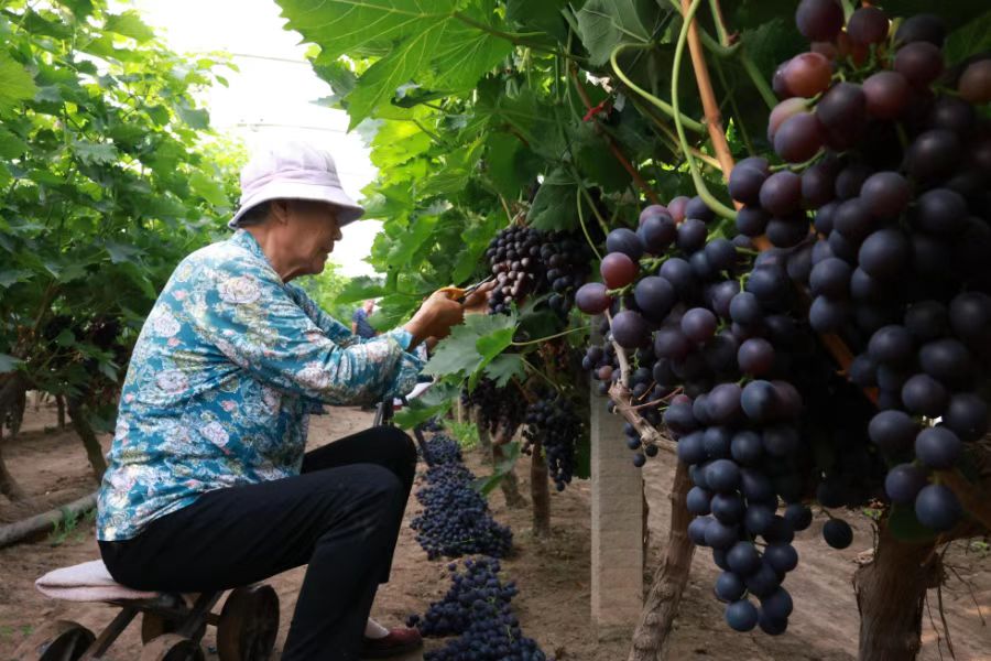 农民在西高庄村葡萄园进行日常管理。(受访者供图)