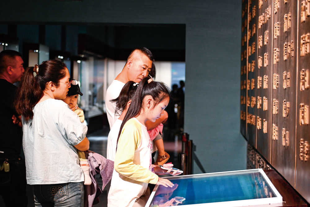 游客在宁夏博物馆了解西夏文字(2024年9月1日摄)。新华社记者毛竹摄