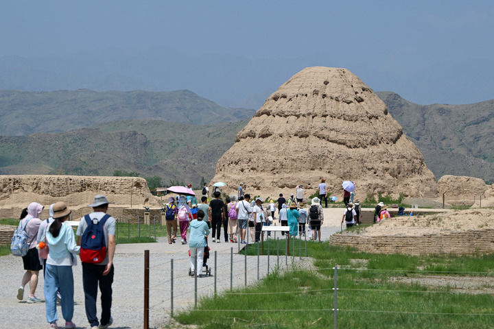 7月13日,游客在西夏陵参观游览。新华社发(袁宏彦 摄)