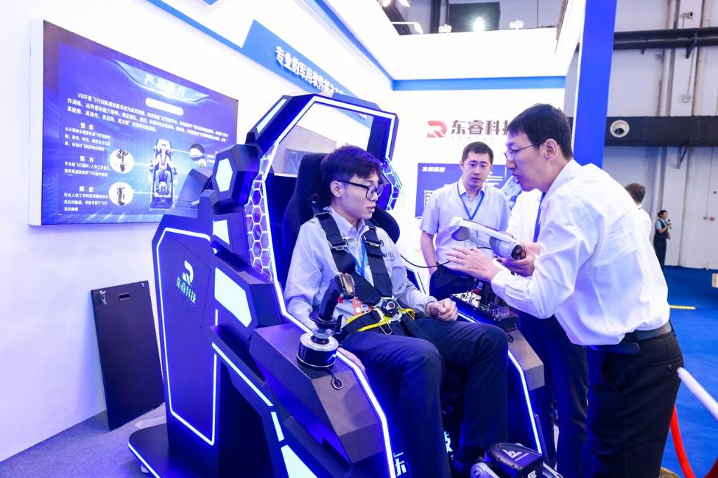 会场另一侧,50款机型、100余架航空器整齐列队,118家企业参展,近400件展品纷纷亮相。从巡检无人机到分体式飞行汽车,从飞行模拟器到VR体验装置,低空经济的各类应用场景依次呈现。