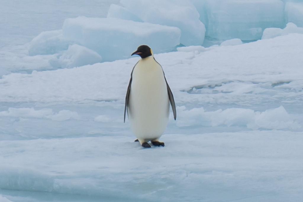 2023年12月3日拍摄的“雪龙2”号在浮冰区遇见的企鹅。新华社发(李竞时摄)
