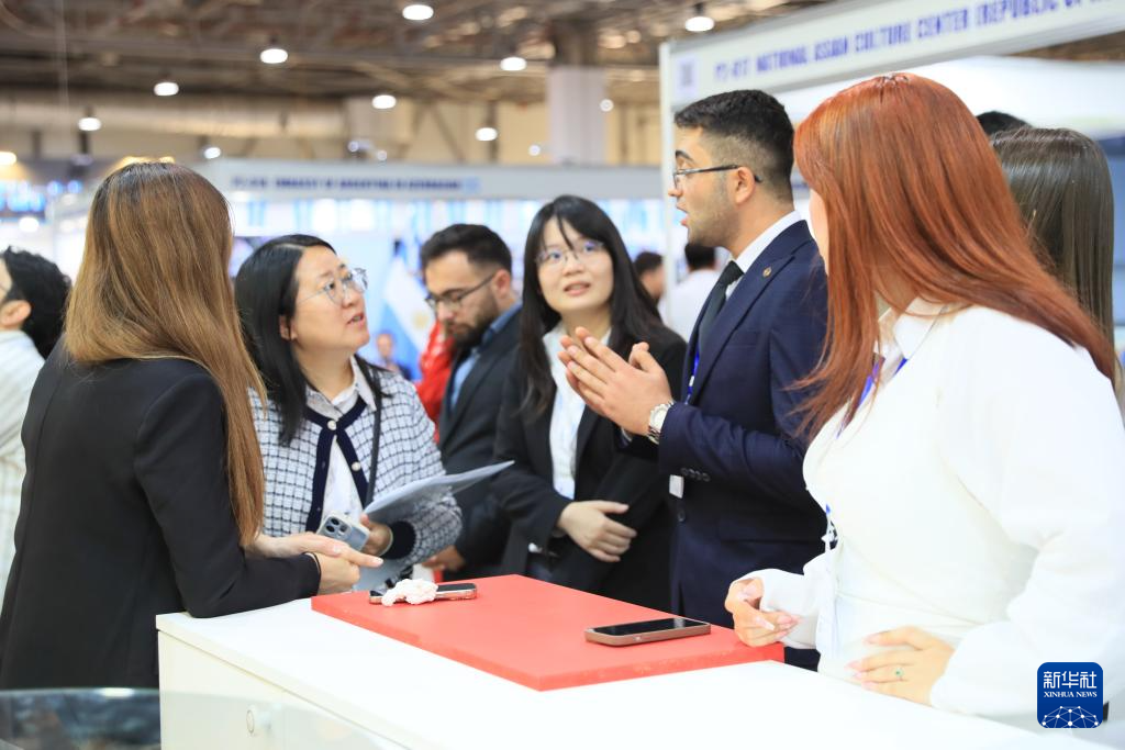 10月1日,在阿塞拜疆首都巴库举办的第十一届巴库国际书展上,人们在中国展台洽谈。新华社记者 陈俊锋 摄