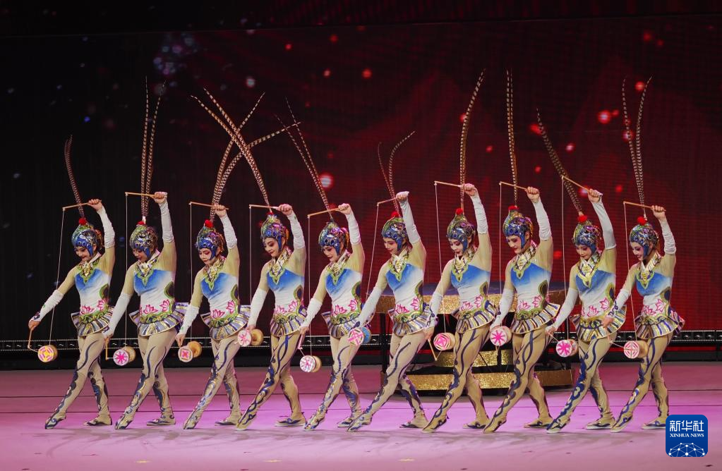 10月2日,中国杂技团在“紫荆花开 香满神州”国庆文艺晚会上表演杂技《俏花旦》。新华社发(王申摄)