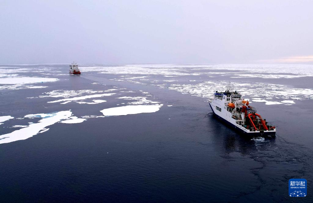 8月4日中午,已经在北冰洋开展科考多日的“雪龙2”号结束阶段性作业,离开海冰密集度非常高的海域,与从国内来到北冰洋冰区的“深海一号”汇合。