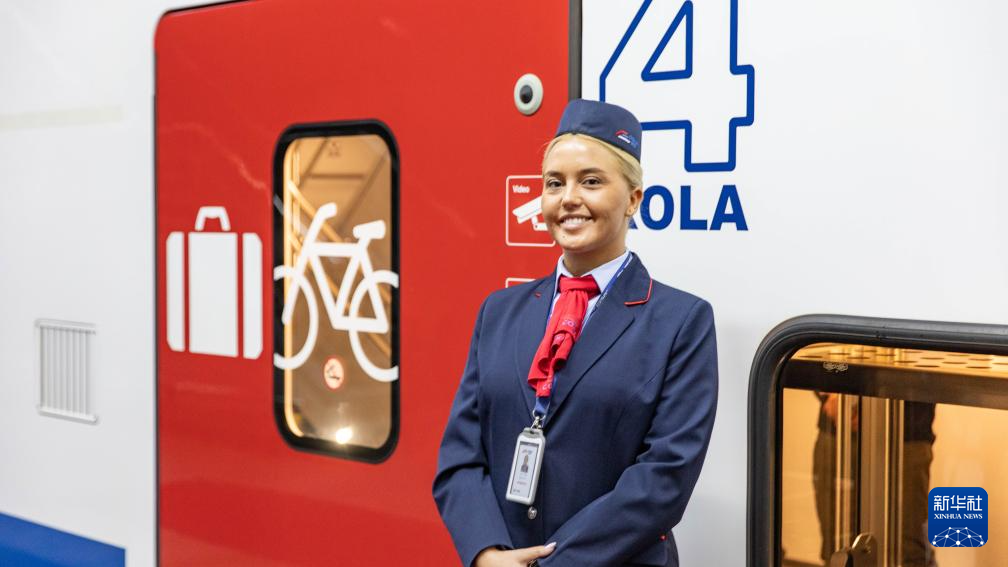 10月3日,在塞尔维亚首都贝尔格莱德,乘务员迎候乘客搭乘中企承建的匈塞铁路列车。新华社发(王韡摄)