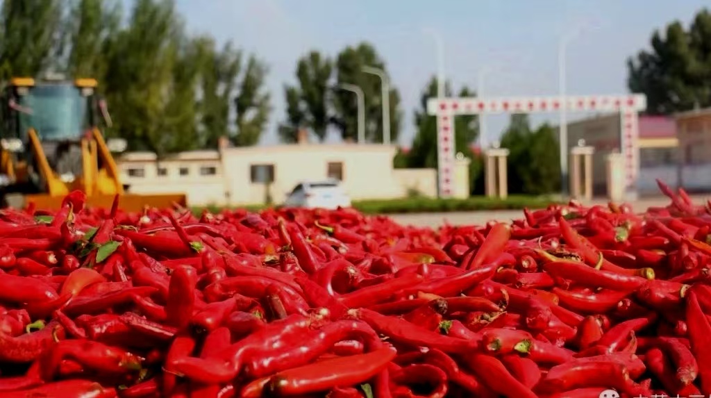 走进巴彦淖尔市乌拉特中旗德岭山镇四义堂村辣椒种植基地,红彤彤的辣椒挂满枝头,种植户忙着组织工人采摘、打包辣椒,农机手驾驶拖拉机及时把采摘好的鲜辣椒转运到收购站。种植大户杨建民告诉记者,他流转了2150亩土地,采用“工厂化育苗+机械化移栽”的方式种植辣椒,采摘好的辣椒经过过秤、装车运往附近的工厂加工。