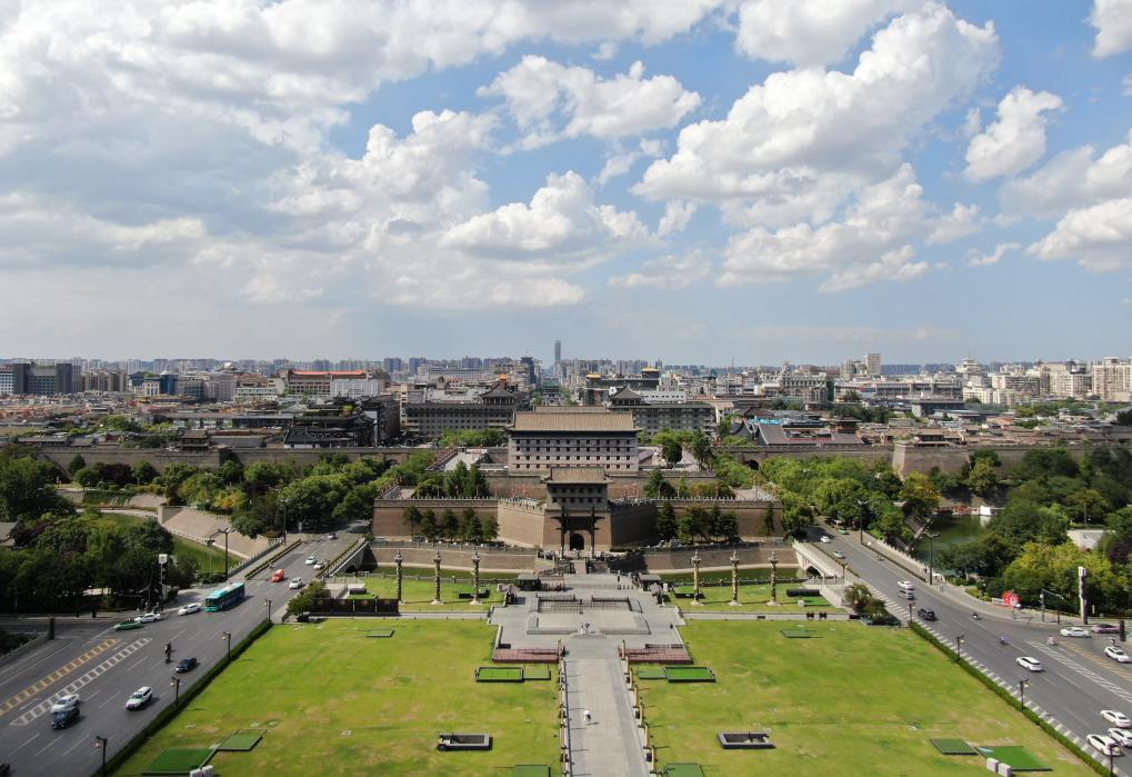 西安城墙永宁门(7月26日摄)(无人机照片)。新华社记者 李一博 摄