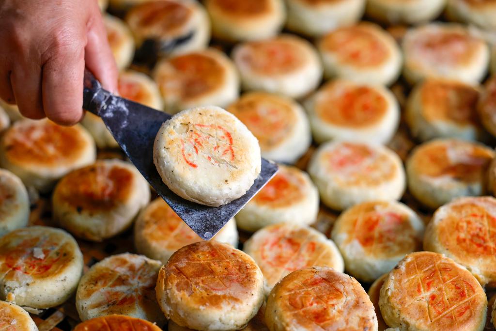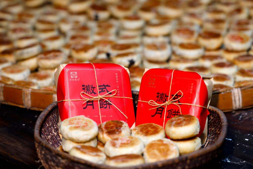 这是制饼手艺人程贵生和家人制作好的“徽式麻仁月饼”(9月25日摄)。新华社发(施亚磊 摄)