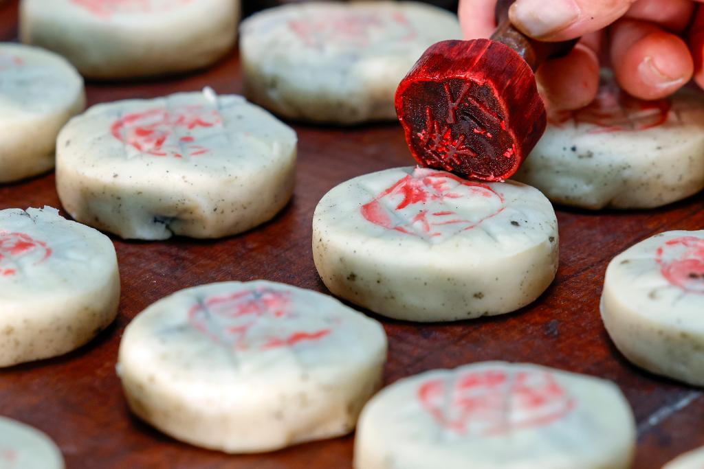 红印点缀月饼表面