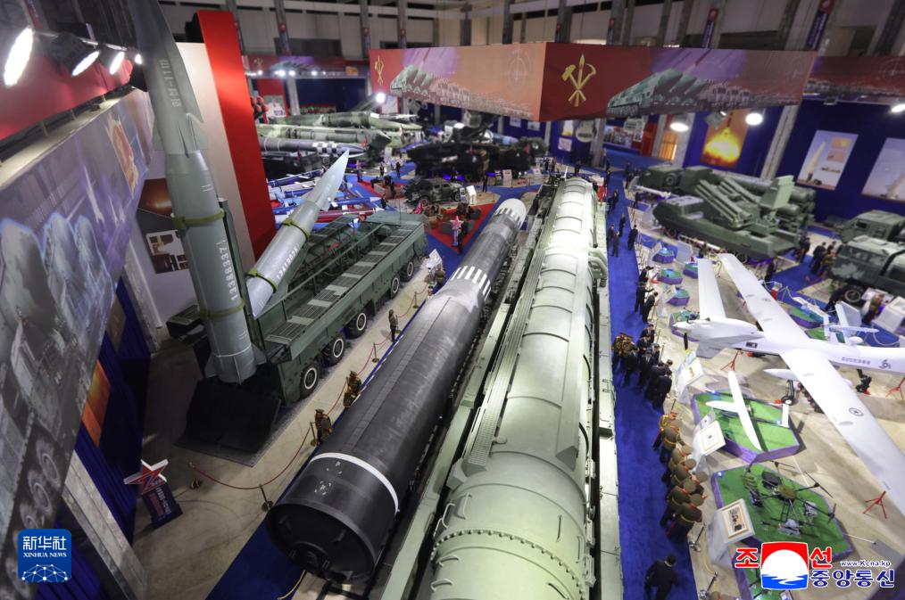 这是朝中社发布的武器装备展照片。 新华社/朝中社