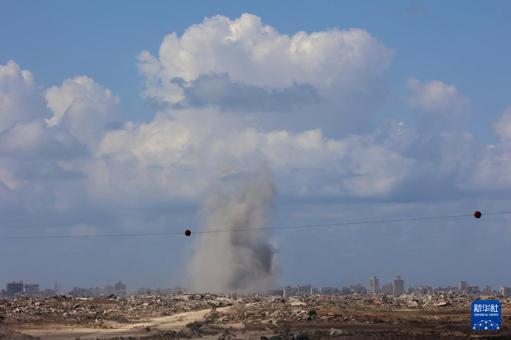 这是9月30日拍摄的加沙城遭袭后升起浓烟的场景。新华社发(吉尔·科恩·马根摄)
