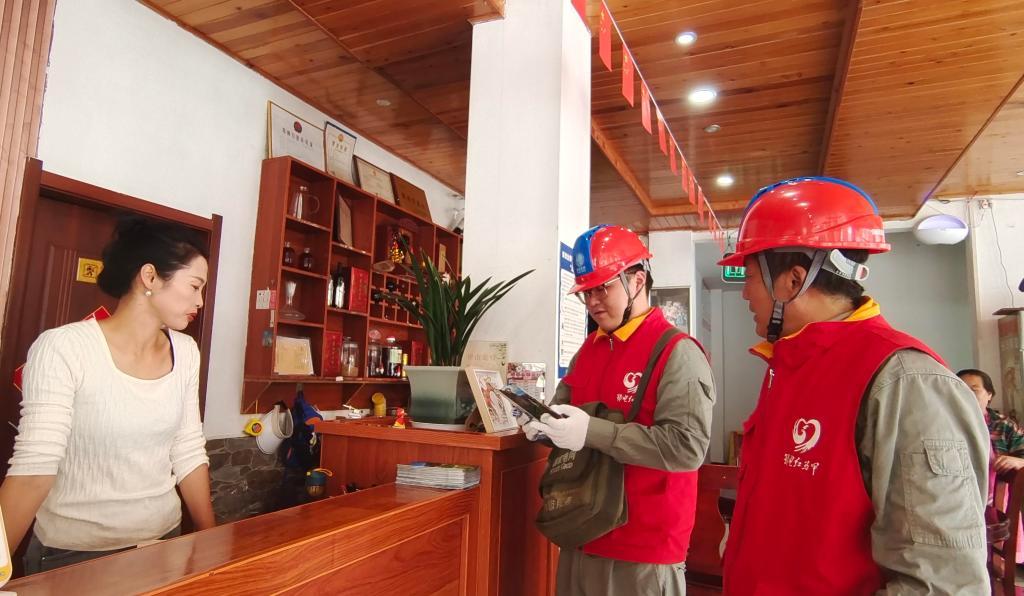 “注意用电安全,有问题随时联系!”对一家民宿内存在安全用电隐患的几处线路接头包扎处理时,谭永军再次叮嘱民宿负责人。随后,他和覃建皓一起奔赴下个巡检点。