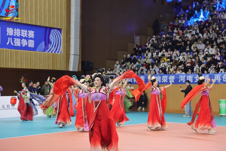 在郑州体育馆,这场比赛吸引了两座城市的球迷前来观赛,每一次扣球,每一次极限扑救,每一次妙传都赢得观众的阵阵喝彩。环顾观赛席,最吸引眼球的要数洛阳的“汉服啦啦队”,20多名美女穿着汉服、拿着团扇,高呼“洛阳队加油”。