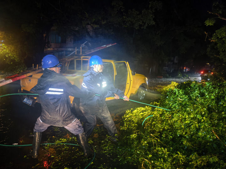工作人员抢修电力。新华网发(陈文裕 摄)
