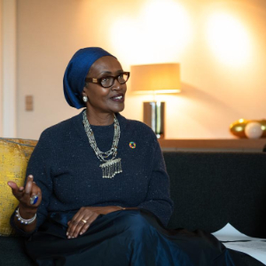 10月11日,在德国柏林,联合国艾滋病规划署执行主任温妮·拜安伊玛接受新华社记者专访。新华社记者 张豪夫 摄
