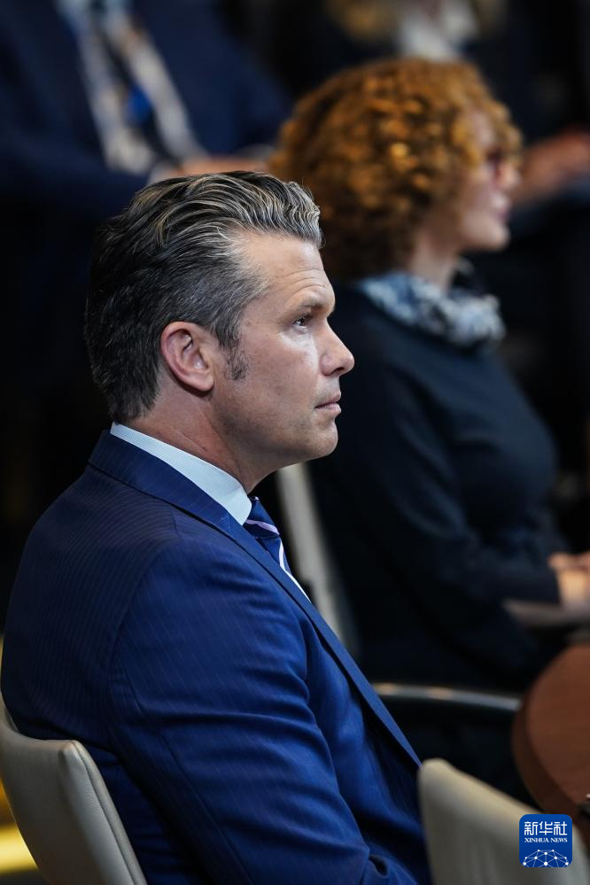 10月15日,美国国防部长赫格塞思在比利时布鲁塞尔出席北约防长会议。新华社记者 彭子洋 摄