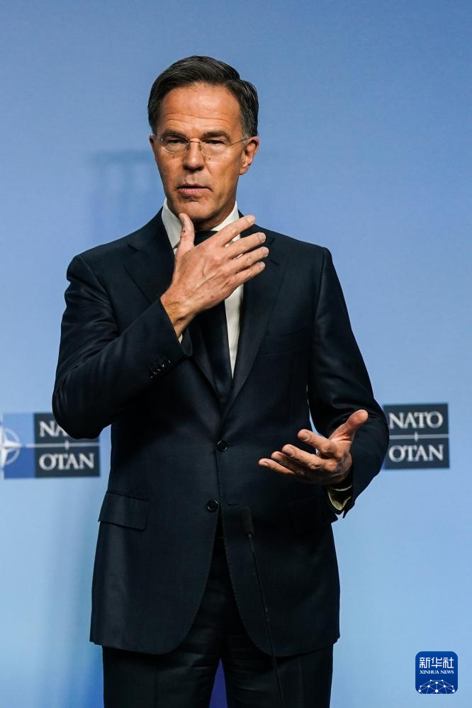 10月15日,在比利时布鲁塞尔举行的北约防长会议上,北约秘书长吕特在记者会上发言。新华社记者 彭子洋 摄