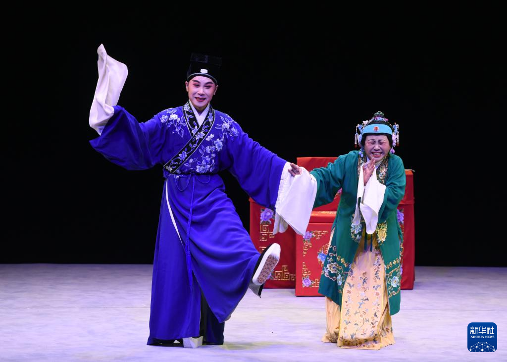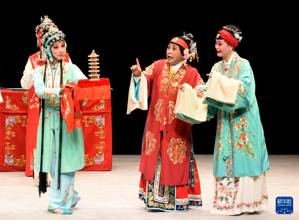 10月21日,在奥地利首都维也纳,演员在表演锡剧《珍珠塔》。新华社记者 贺灿铃 摄