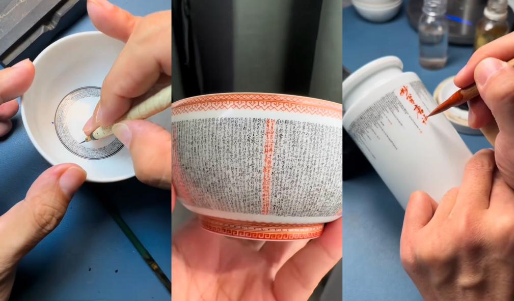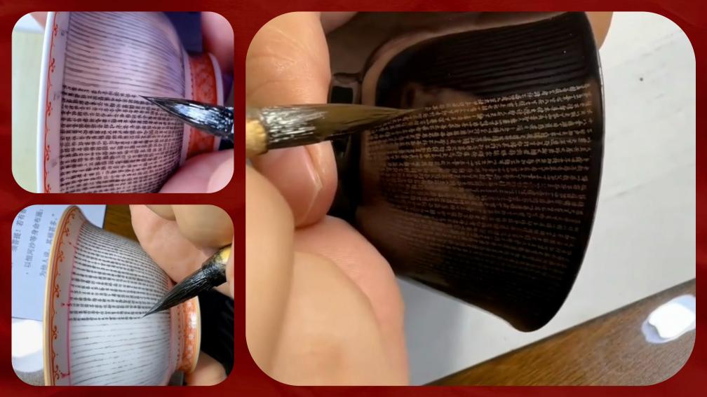 在江西景德镇,有一批“微书”匠人。他们在瓷器釉面上,用特制的毛笔和墨料,书写极其微小的汉字。