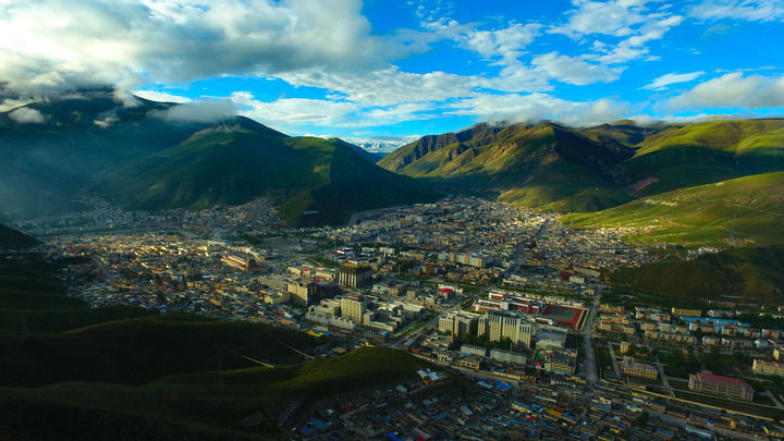 图为青海省玉树藏族自治州玉树市航拍画面。(2024年7月25日)新华社发 潘彬彬摄
