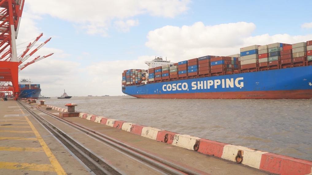 23日,搭载第八届进博会海运展品——锡兰红茶的集装箱货轮“新上海”轮靠泊上海外高桥口岸。上海边检总站外高桥边检站联合口岸单位开通进博展品“绿色通道”,助力第八届进博会展品安全准时入境布展。