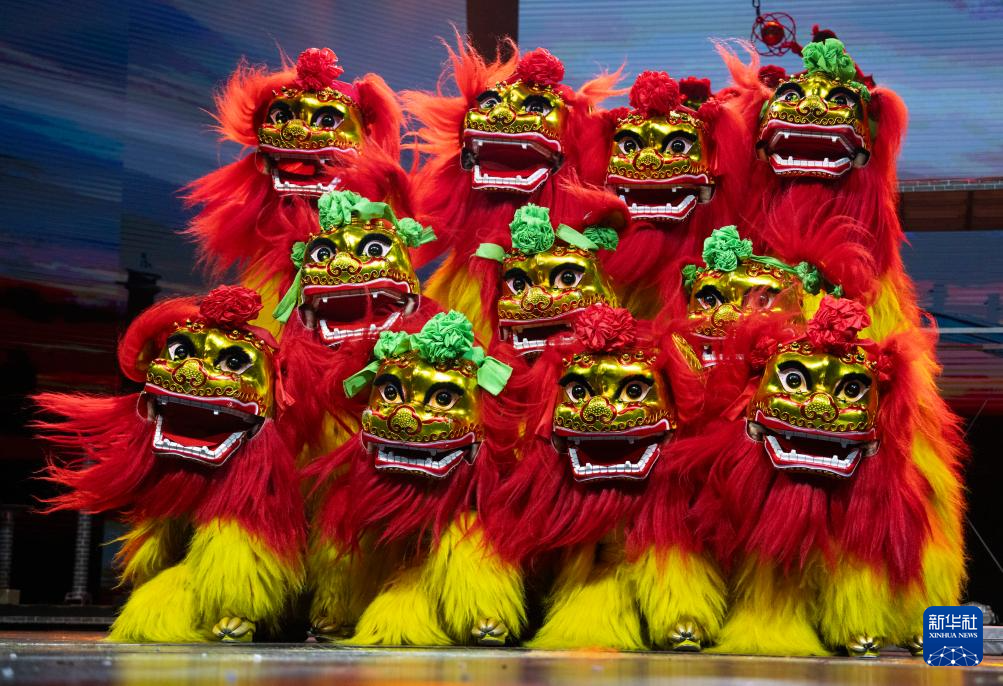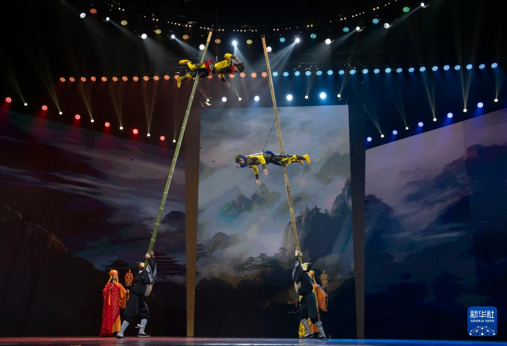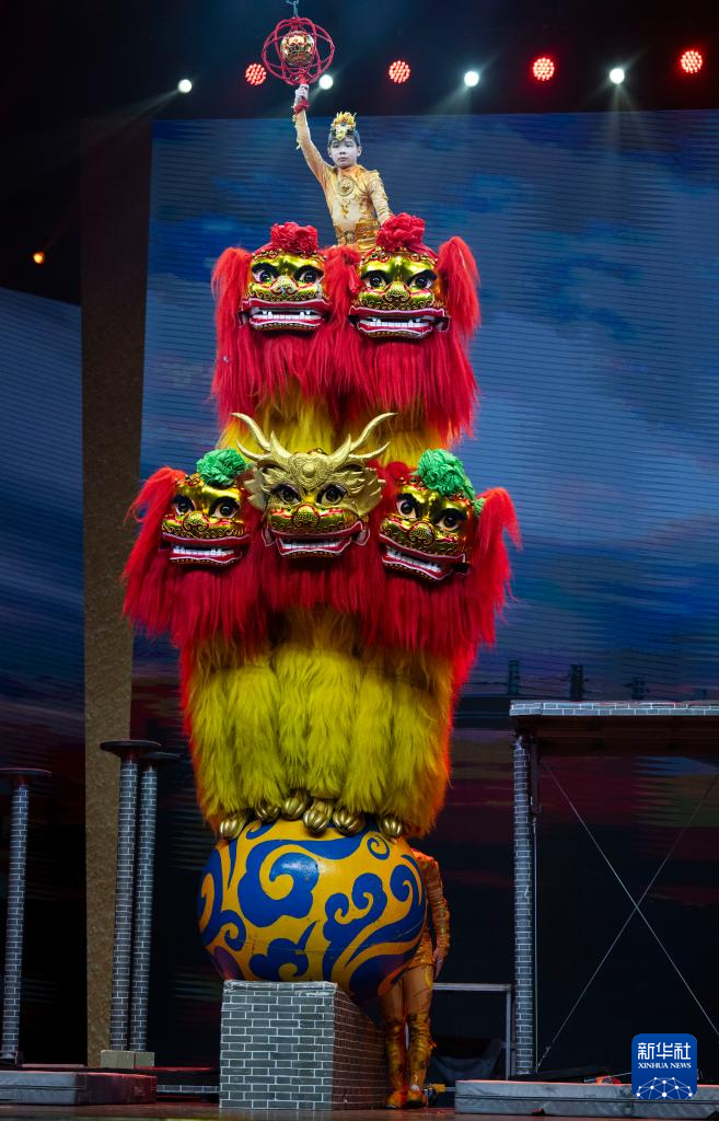 10月25日,在北京二七剧场举行的“艺苑撷英——2025年全国优秀青年艺术人才展演”上,河北省杂技团演艺有限公司、沧州杂技团演员表演杂技《祥狮跃九州》。新华社记者 才扬 摄
