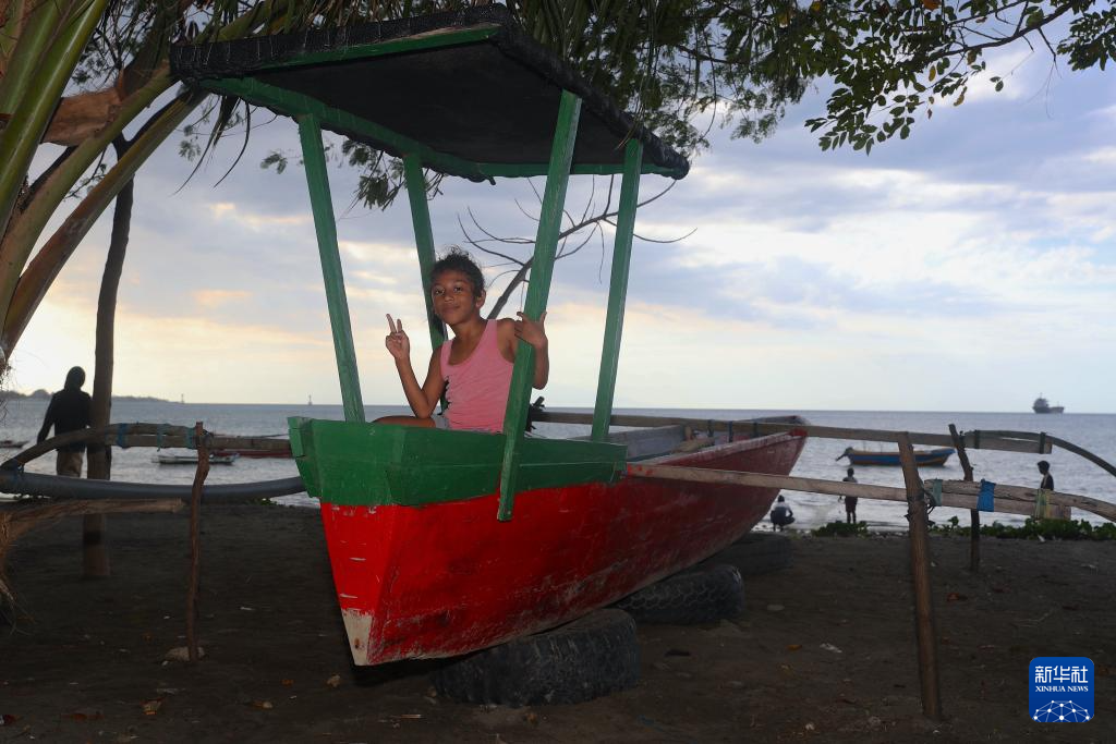 9月16日,在东帝汶帝力,一名儿童在海边玩耍。新华社记者 岑云鹏 摄