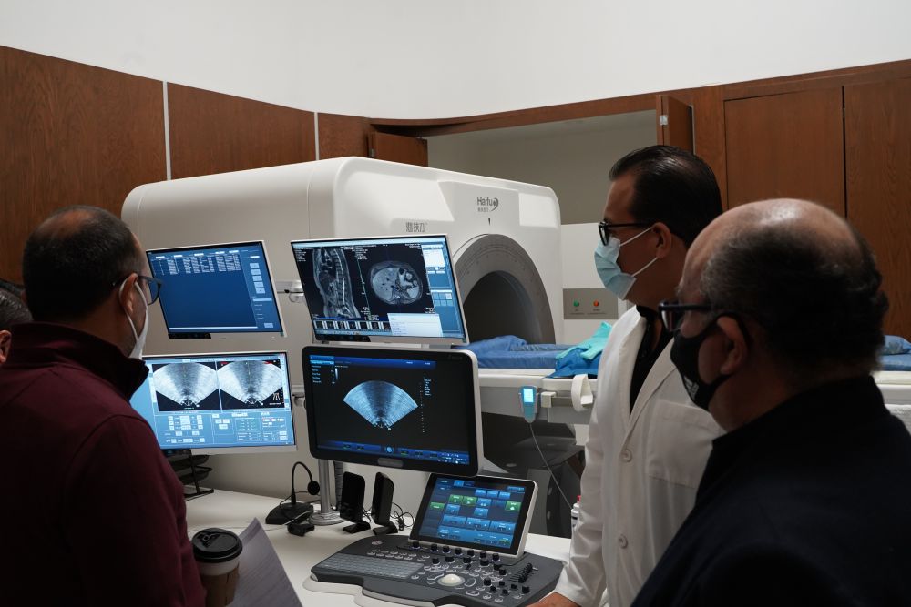 2021年8月23日,在墨西哥普埃布拉州乔卢拉市肿瘤消融医学中心,重庆海扶医疗的墨方合作医生向到访医生介绍“海扶刀”治疗系统。“海扶刀”治疗系统由中国首创,利用体外高强度聚焦超声波产生高温,以消融患者体内肿瘤细胞,实现非侵入性治疗的新选择。