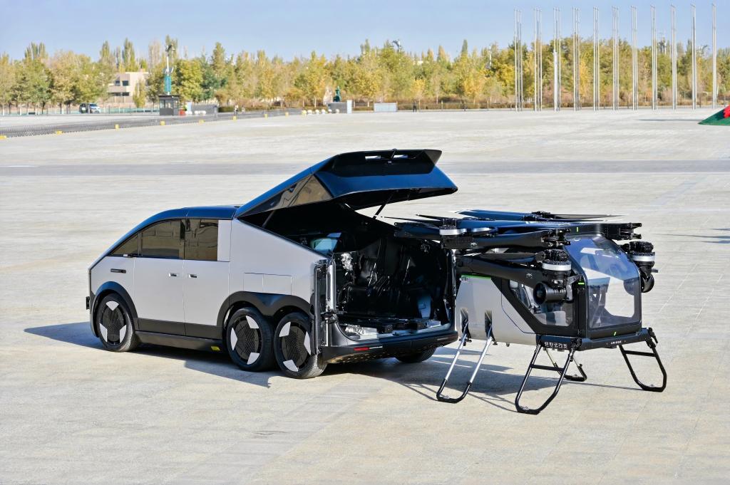 “陆地航母”分体式飞行汽车在敦煌进行演示。新华社发