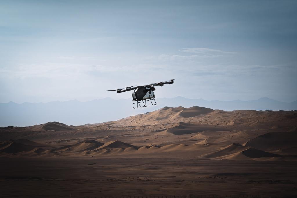 “陆地航母”分体式飞行汽车在敦煌进行自动分离演示。新华社发