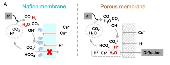 二氧化碳是当前主要的温室气体。如何能将二氧化碳“变废为宝”,是实现碳达峰、碳中和的关键。长期以来,零间隙膜电极二氧化碳电解槽因能量效率高和集成度高而被视为二氧化碳转化利用的重要方向。然而,零间隙膜电极电解槽运行过程中通常面临析盐、渗水及析氢副反应等问题,稳定性与碳利用率难以兼顾。