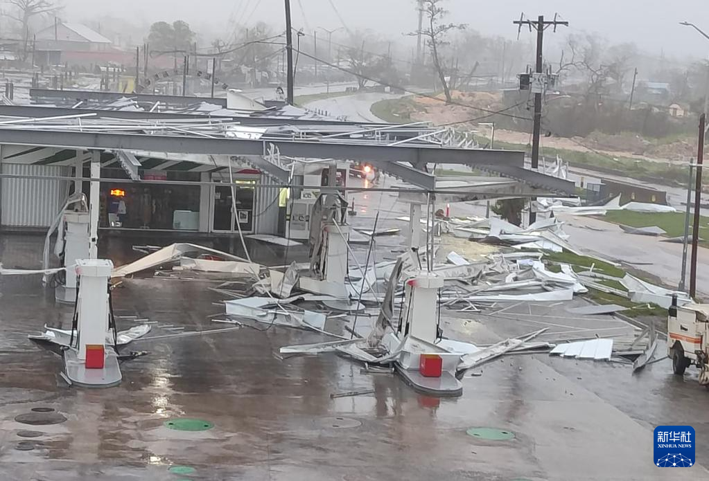 10月28日,在牙买加蒙特哥贝市,一处加油站在飓风中受损。 新华社发(牙买加观察家报供图)