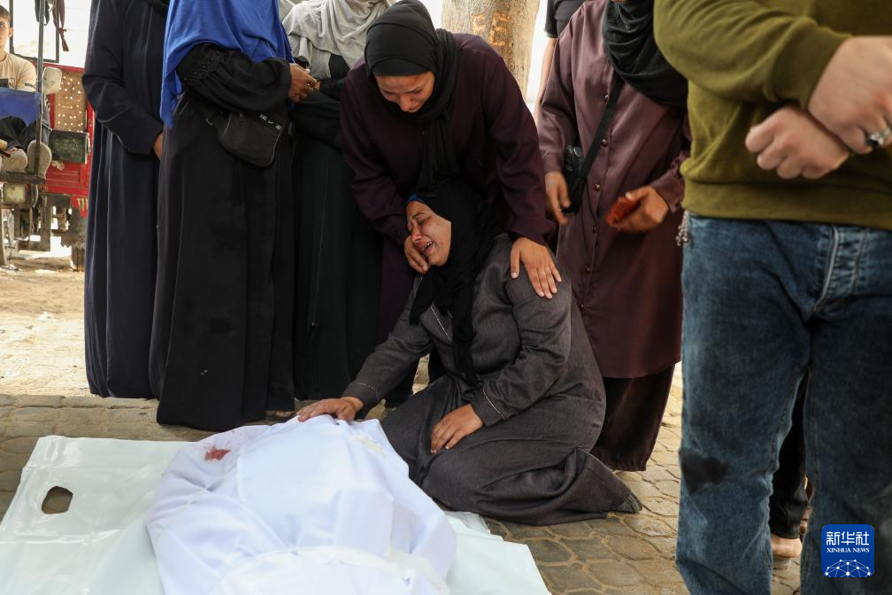 10月29日,巴勒斯坦人在加沙城的希法医院痛哭,哀悼在以色列空袭中死难的亲友。新华社发(里泽克·阿卜杜勒贾瓦德摄)