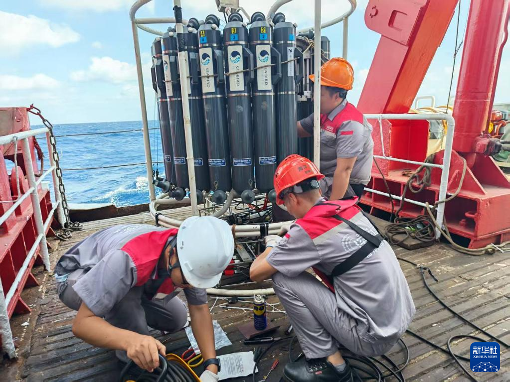 11月1日,科研人员在装置下水前进行仪器调试。新华社记者白瑜摄