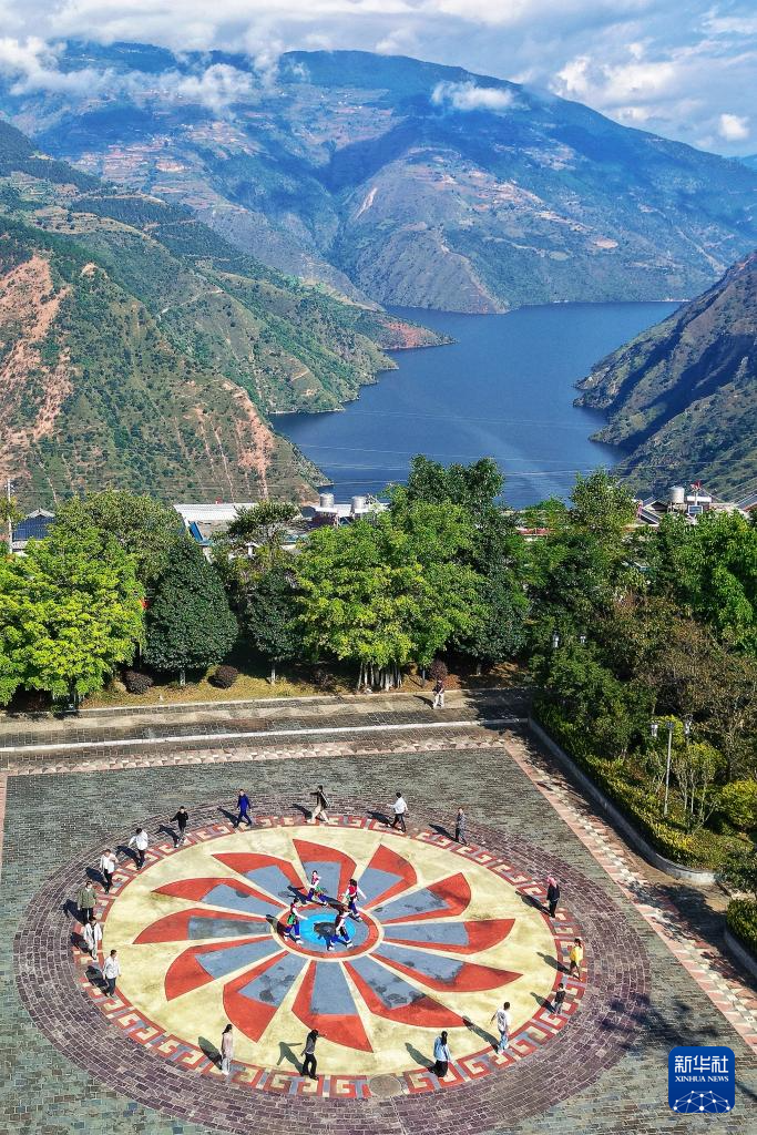 10月31日,小湾东镇居民在澜沧江畔的移民广场休闲(无人机照片)。