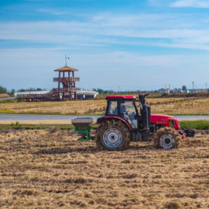 11月3日,农民驾驶农机在江苏省兴化市兴东镇周韩村田间施肥,为冬小麦播种做准备(无人机照片)。新华社发(周社根 摄)