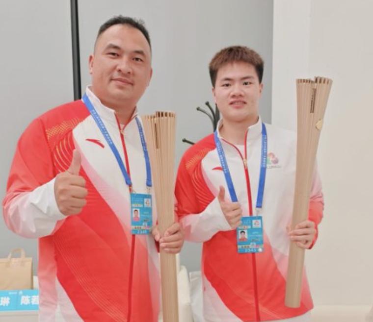 11月9日,火炬手赖宣治(左)、梁伟铿传递火炬。当日,第十五届全国运动会开幕式在广东奥林匹克体育中心举行。新华社记者 吴鲁 摄