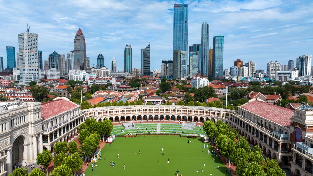 这是8月28日拍摄的位于天津五大道历史文化街区的民园广场(无人机照片)。新华社记者 赵子硕 摄