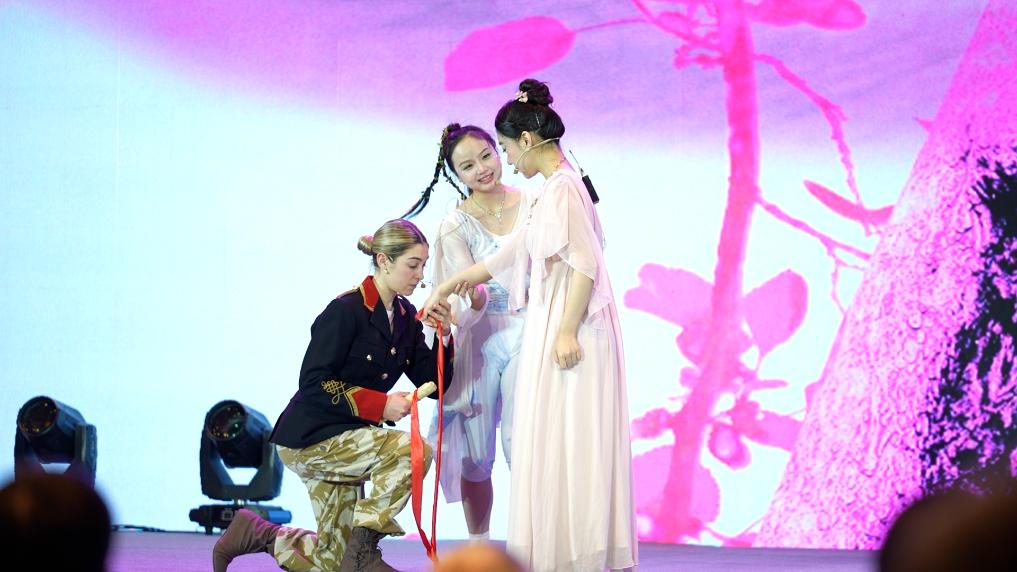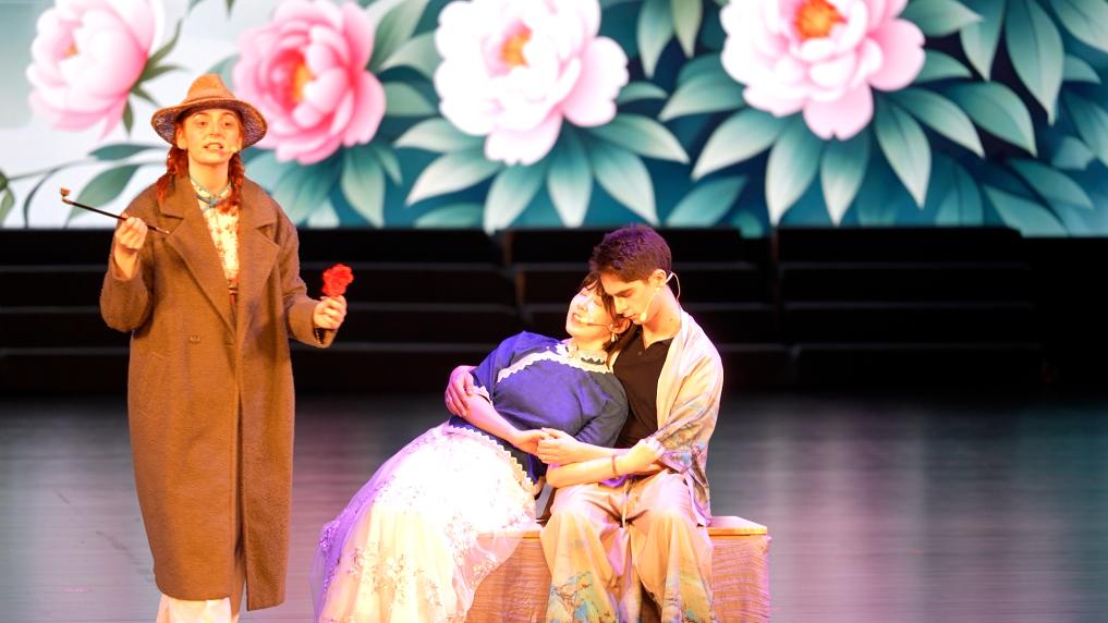 当东方年轻面孔的杜丽娘婉转吟唱倾诉至情时,与之执手相望的柳梦梅由爱尔兰青年诠释,杜丽娘的侍女春香由英国青年扮演,而美国青年演员饰演的判官以英文念白穿插其间——这一充满文化张力的舞台画面,正是2025汤显祖国际戏剧交流月活动的缩影。