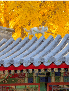 故宫的青瓦红墙旁