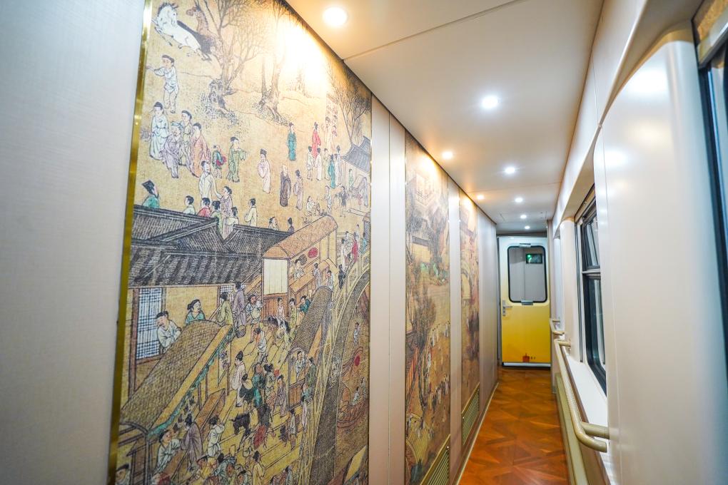 “中原铁道·大河之南号”以清明上河图为主题的特色车厢。(受访者供图)