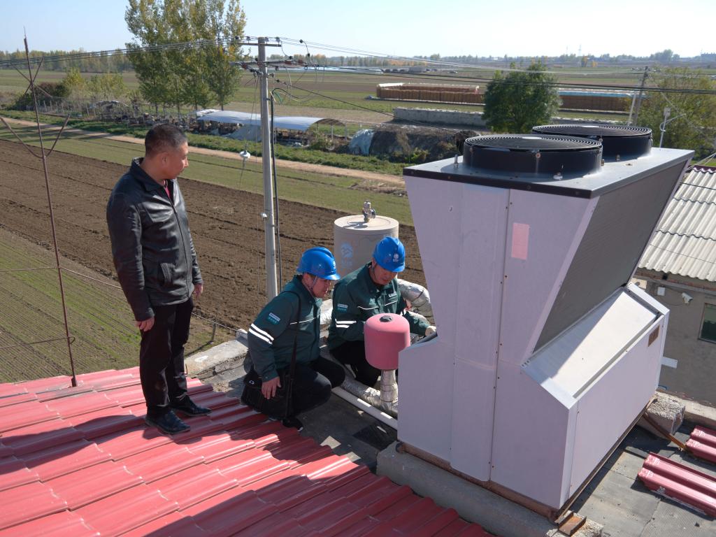 国网正定县供电公司员工协助村民检查电采暖设备。新华社记者王昆 摄