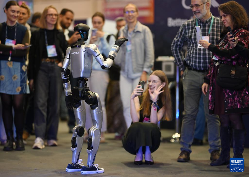 在葡萄牙里斯本举办的2025年网络峰会上,宇树科技展台如同小型演唱会现场,人们将展台围了个里三层外三层,灯光下,一台灵巧的人形机器人不断与人们握手、向人们行礼,打上一套拳,再跳上一段舞,引来阵阵惊叹。