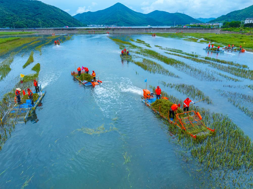 工作人员在浙江省象山县墙头镇治理互花米草。(象山县自然资源和规划局供图)