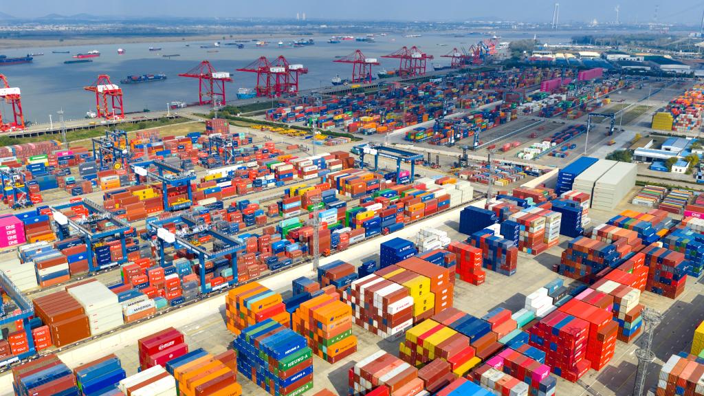 11月14日拍摄的江苏省港口集团南京港龙潭港区(无人机照片)。新华社发(方东旭摄)