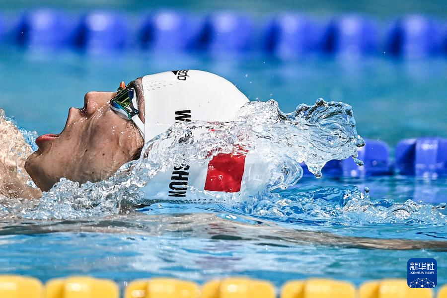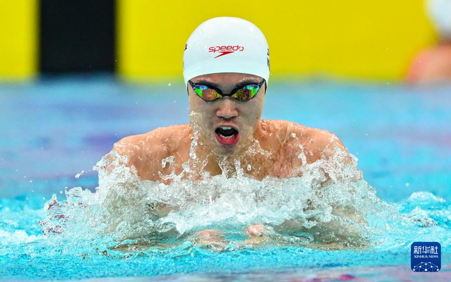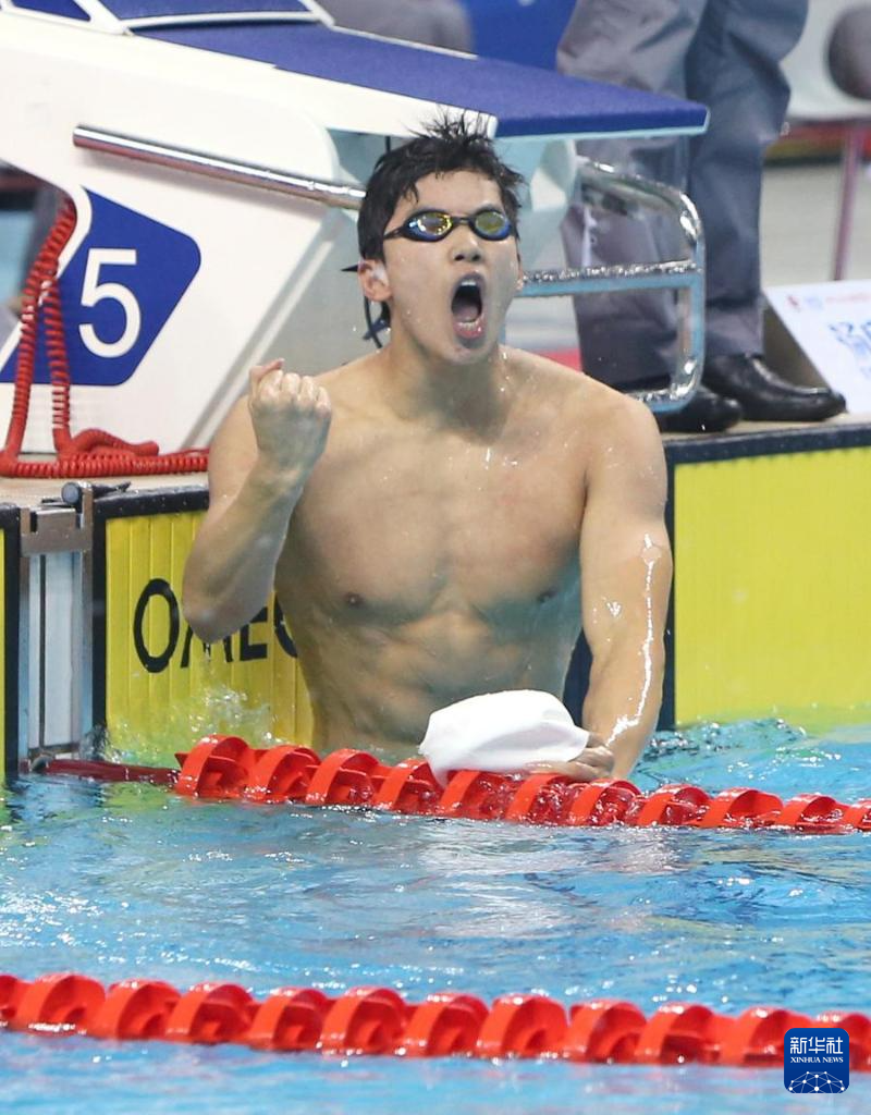 2021年9月24日,汪顺在第十四届全国运动会游泳项目男子200米个人混合泳决赛中,以1分56秒33的成绩获得冠军。新华社记者 吴刚 摄