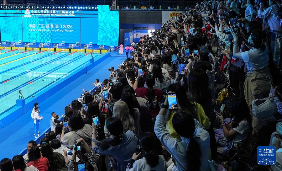 2025年11月14日,汪顺在第十五届全国运动会游泳男子200米个人混合泳决赛后庆祝夺冠。新华社记者 薛宇舸 摄