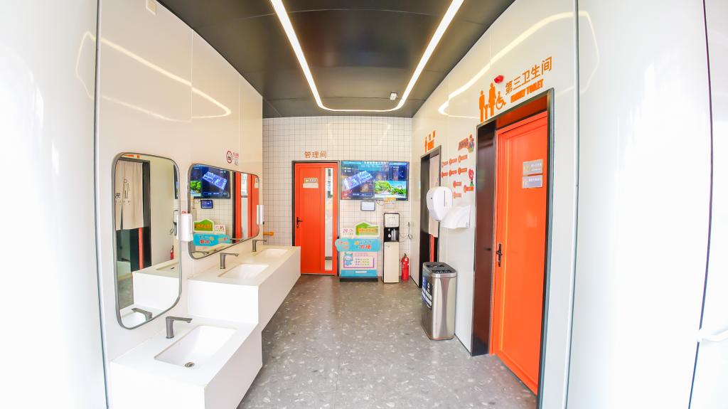 智慧管理、自动化无人保洁与智能除臭等智慧和节能技术应用层出不穷。世纪公园7号门公厕引入物联网技术,实现远程控制、安全监测等功能。“悦薇驿”公厕采用再生木材与环保涂料,其引入的节水装置可省水30%。淮海中路918号公厕还增设了“搁物架遗留提醒”功能。