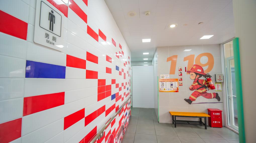 这是万源城公厕的装饰,以消防安全为主题。新华社发