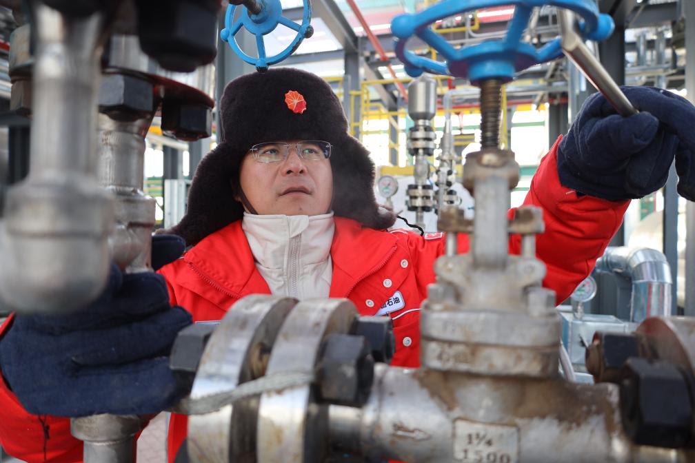 11月10日,温吉桑储气库群集注站内,员工正在进行供气前的巡检。(蔡晓珑 摄)